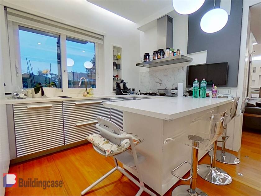 Posto al terzo piano è composto da ampio ingresso, salone doppio con camino, cucina abitabile, camera da pranzo, camera da letto padronale con bagno privato, due comode camere singole, ulteriore bagno nella zona notte dotato di vasca, bagno ospiti nella zona giorno, armadi a muro e due terrazzi a livello.