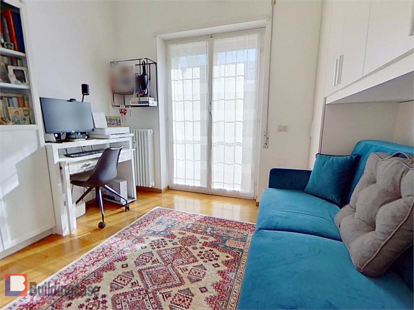 Situato al piano terra con affacci da primo, internamente è composto da ingresso con soggiorno a vista, cucina, camera con cabina armadio e bagno privato, cameretta, ulteriore bagno, ripostiglio e diversi armadi a muro, balcone e terrazzino vivibile.
