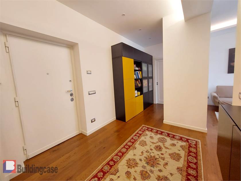 È dotato di porta blindata, infissi insonorizzati doppio vetro in PVC, con apertura a battente e vasistas, nonché maniglie con chiusura di sicurezza per i bambini. Tapparelle elettriche con comodo telaio a sporgere. Parquet Listone Giordano nelle camere e salone, pavimentazione in gres in cucina, bagni e lavanderia, le soglie di finestre/balconi sono in marmo di Carrara, porte Bertolotto, impianto di climatizzazione Daikin nel salone e nelle camere, con scarichi sotto traccia che confluiscono direttamente negli scarichi dell'appartamento, permettendo di non utilizzare scomode taniche per la raccolta della condensa.