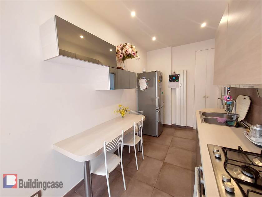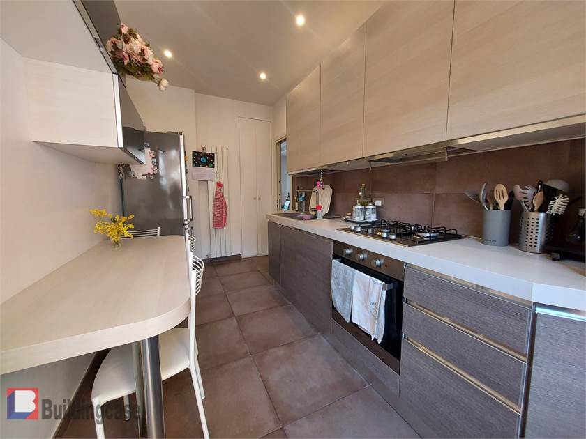 Dal salone si accede alla cucina abitabile, separata, con uscita sul secondo balcone con affaccio a est sull'ampio e curato giardino condominiale.