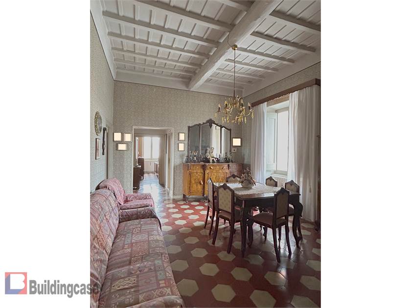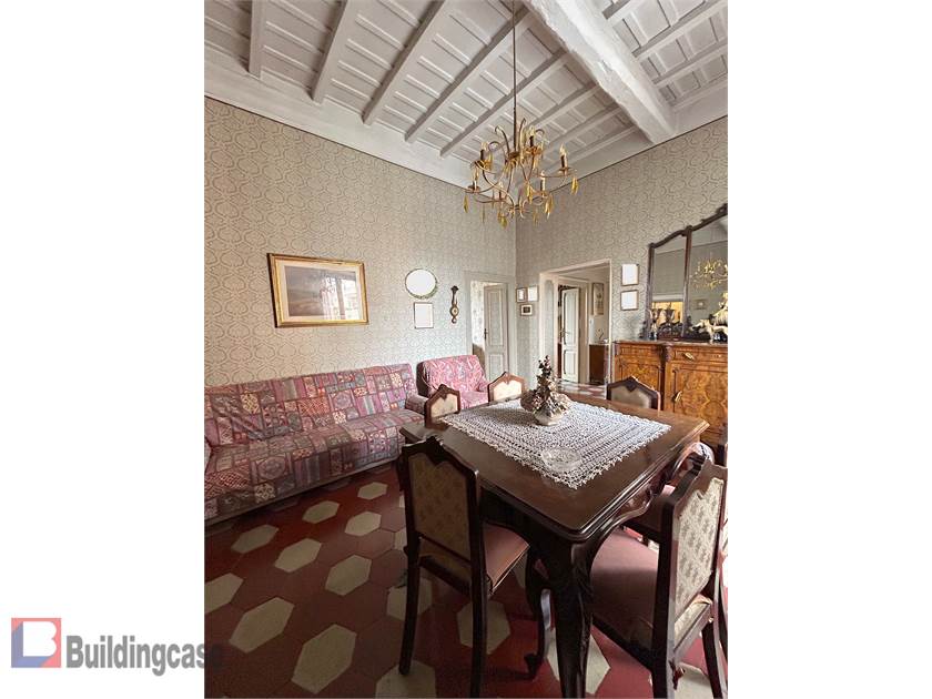 Ha un triplo affaccio esterno sulla via principale, su via San Michele e sulla Piazza e gode pertanto di un'ampia luminosità. L'immobile è in discreto stato di manutenzione - ha pavimenti in cementine antiche e meravigliosi soffitti con travi a vista restaurati. Porte in legno. Riscaldamento autonomo. Soffitti alti 3,50 mt.