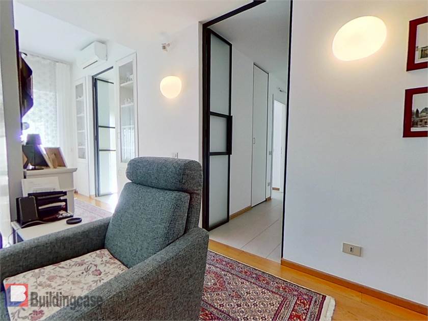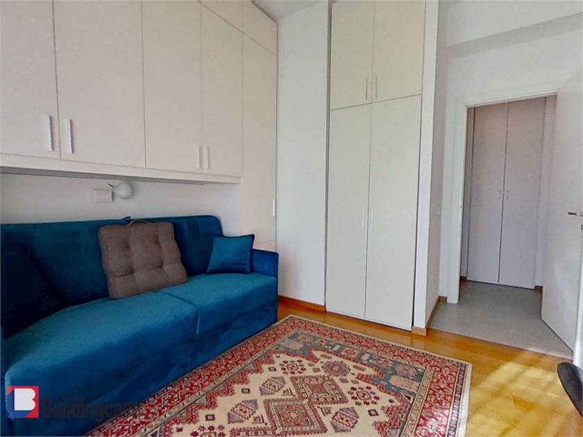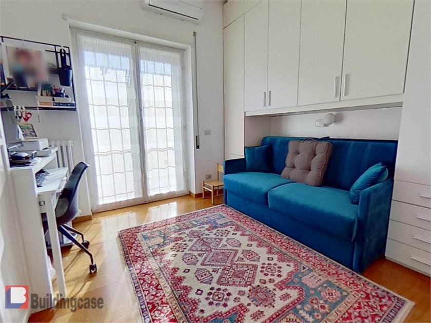Situato al piano terra con affacci da primo, internamente è composto da ingresso con soggiorno a vista, cucina, camera con cabina armadio e bagno privato, cameretta, ulteriore bagno, ripostiglio e diversi armadi a muro, balcone e terrazzino vivibile.