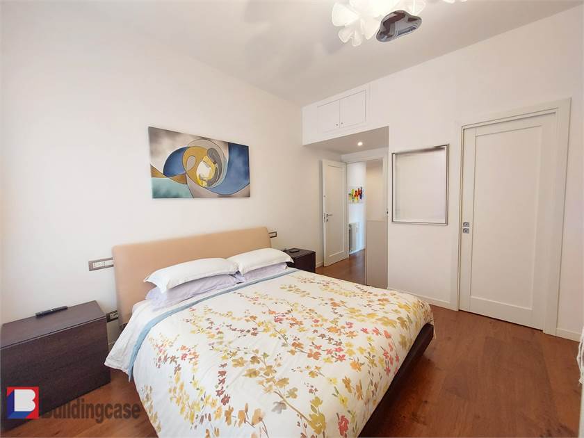 È dotato di porta blindata, infissi insonorizzati doppio vetro in PVC, con apertura a battente e vasistas, nonché maniglie con chiusura di sicurezza per i bambini. Tapparelle elettriche con comodo telaio a sporgere. Parquet Listone Giordano nelle camere e salone, pavimentazione in gres in cucina, bagni e lavanderia, le soglie di finestre/balconi sono in marmo di Carrara, porte Bertolotto, impianto di climatizzazione Daikin nel salone e nelle camere, con scarichi sotto traccia che confluiscono direttamente negli scarichi dell'appartamento, permettendo di non utilizzare scomode taniche per la raccolta della condensa.