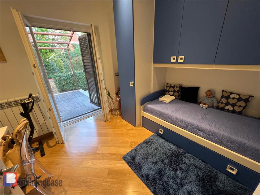 Via dei Torriani in villino indipendente composto da piano rialzato e primo piano, completamente ristrutturato, cappotto termico, pannelli fotovoltaici da 1KW per la produzione di energia elettrica e solare termico per la produzione di acqua calda sanitaria in supporto della caldaia a condensazione, proponiamo in vendita un appartamento posto al piano rialzato con doppia esposizione, ingresso indipendente carrabile per 2 posti auto composto da soggiorno all'americana, ampia camera da letto, cameretta, cucina e ampio servizio con vasca e comoda doccia. Infissi in PVC con vetrocamera, zanzariere, persiane blindate, aria condizionata caldo/freddo, termoautonomo. Completa la proprietà un ampio giardino pavimentato di c. a 150 mq e una comoda cantina asciuttissima. Euro 395.000, 00